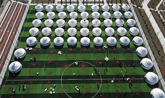 Kahramanmaraş'ta depremzedeler için geleneksel Kırgız çadırları kuruluyor