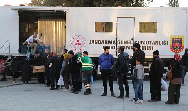 Kahramanmaraş merkezli 11 şehirde yıkıma neden olan depremlerin ardından Jandarma Genel Komutanlığı, harekete geçerek depremzedeler için 2 mobil mutfak TIR’ı görevlendirdi. İçinde aşçı ve mobil mutfak personelinin yer aldığı TIR’lar, Kahramanmaraş Milli İdare Meydanı’nda konuşlandırılırken, günlük sıcak yemek ve ekmek çıkarılıp, depremzedelerin gıda ihtiyacı karşılanıyor.2 TIR’da günlük 7 bin kişiye sıcak yemek pişirilirken, 11 bin de ekmek yapılıyor. Depremzedeler, Jandarma Genel Komutanlığı önünde yemek saatlerinde ücretsiz sıcak yemek için uzun kuyruklar oluşturuyor.Jandarma Genel Komutanlığı’nın deprem bölgesinde dağıttığı sıcak yemeğin çok önemli olduğunu belirten Salim Şahin, “Ben Niğde'den yardım amaçlı geldim. Şoförlük yapıyorum, hafriyat taşıyorum. Daha önce burada yemek yedim ve memnunum. İlgi alaka çok güzel” dedi.Depremzede Hasan Bekçioğulları da çok lezzetli yemek çıkarıldığı için yemek saatlerinde jandarma TIR’ına geldiğini vurgulayarak, “Ellerine sağlık. Hizmet çok harika. Şu anda ev yok, bark yok. Tamamen dışarıdayız. Kendi imkanlarımızla günümüzü geçirmeye çalışıyoruz. Bu sıcak yemek bizim için çok iyi oldu. Allah razı olsun” diye konuştu. Yemek sırasında bekleyen Mustafa Özbek ise depremin hemen ardından gelen TIR sayesinde sıcak yemek yediklerini söyleyerek, “Depremzedeyim, evimiz ağır hasarlı. Mobil mutfak depremin hemen ardından beri burada. Yemekleri çok güzel. Komutanlar sağ olsunlar her türlü ihtiyacımızı gideriyor” dedi.