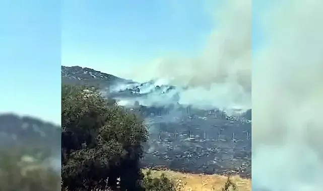 Kahramanmaraş'ın Pazarcık ilçesinde, Yangını söndürmek için ekipler havadan ve karadan müdahale ediyor.
