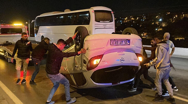 İzmir'in Konak ilçesinde, sürücüsünün kontrolünden çıkan otomobil kaldırıma çarpıp takla attı. Kazada hafif yaralanan sürücünün 1.67 promil alkollü olduğu belirlendi.