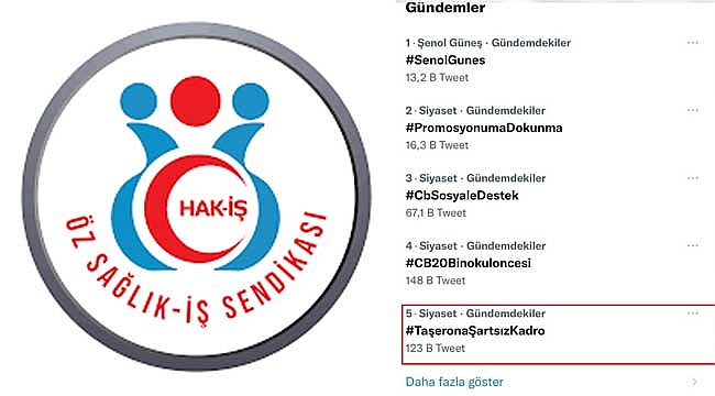 Öz Sağlık-İş Sendikası tarafından başlatılan etkinlikte 2 saat içerisinde 123 bin Tweet atıldı.