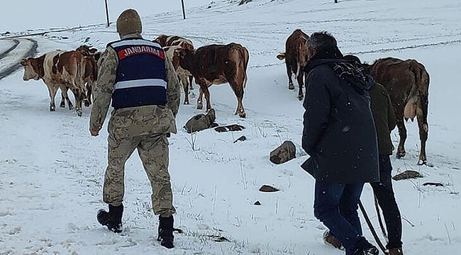 Ardahan'ın Damal ilçesine bağlı Tepeköy'de, 20 ineğini otlatmaya götüren ve kar yağışı nedeniyle mahsur kalan Nargüzel Mera (65), jandarma ekiplerince 4 saatlik çalışma sonucu kurtarıldı.