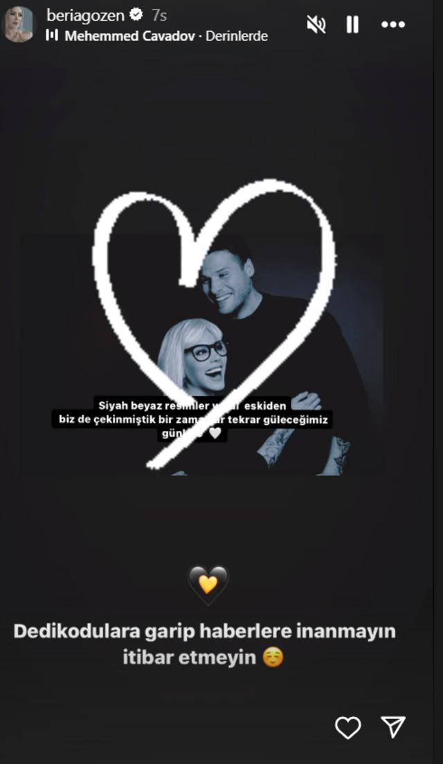 Ancak Aleyna-Yunus Emre yakınlığının sürmesinin ardından Beria Özden, Instagram hesabında yer alan "Y.E." yazısını kaldırmıştı. Sitem dolu paylaşımlarının ardından bunu yapmasıyla da haklarında boşanma iddialarının ortaya atılmıştı.Beria Özden'den boşanma iddialarına yanıt verdi. Özden, Instagram hesabından yaptığı paylaşımla "Dedikodulara garip haberlere inanmayın itibar etmeyin" dedi.