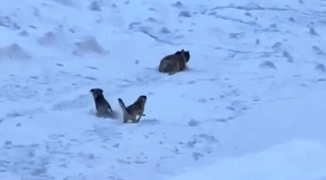 Tunceli'de karla kaplı 2 bin 600 rakımlı Meydan Dağı’na tırmanış yapanları, karşılarına çıkan bozayıdan, 2 Kangal köpeği kurtardı. Ayının köpeklerden kaçma anı, dağcılar tarafından görüntülendi.