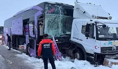 Kars'ın Sarıkamış ilçesinde kargo kamyonuna çarpan yolcu otobüsünde 9 kişi yaralandı