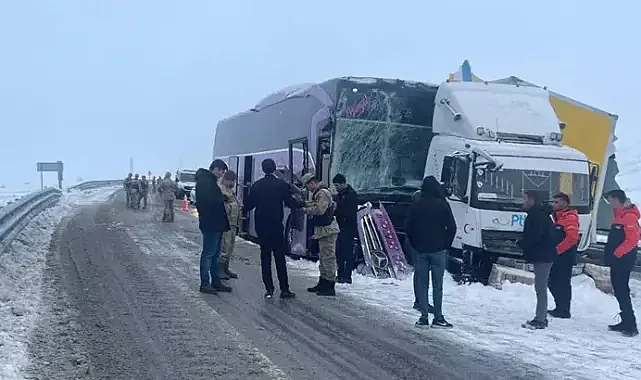 Kars'ın Sarıkamış ilçesinde kamyonu çarpan yolcu otobüsünde 9 kişi yaralandı