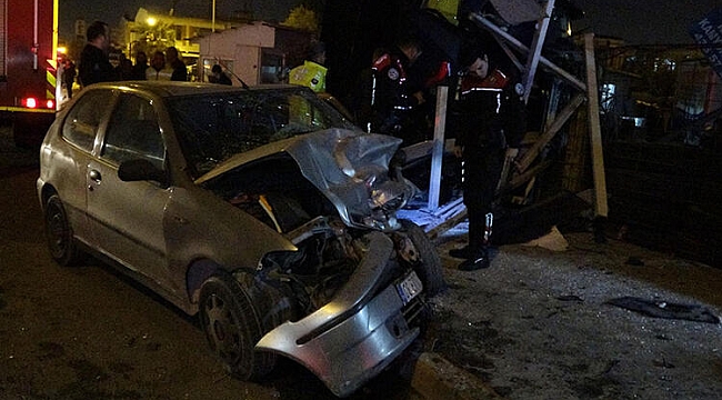 Karşı şeride geçen TIR'ın otomobile çarpıp, otobüs durağına dalması kamerada