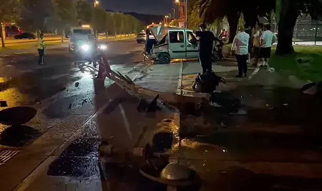 Kartal'da hafif ticari araç aydınlatma direğine çarptı; 3 kişi yaralandı
