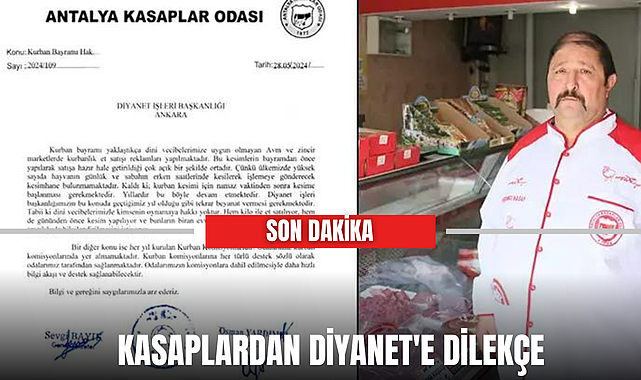 Türkiye Kasaplar Federasyonu ve Antalya Kasaplar Odası Başkanı Osman Yardımcı tarafından Diyanet İşleri Başkanlığı'na gönderilen dilekçede, Kurban Bayramı yaklaştıkça AVM ve zincir marketlerde kurbanlık et satışı reklamları yapıldığı belirtildi. Bu kesimlerin bayramdan önce yapılarak satışa hazır hale getirildiğinin çok açık ortada olduğu kaydedilen dilekçede, şöyle denildi:"Çünkü ülkemizde yüksek sayıda hayvanın, günlük ve sabahın erken saatlerinde kesilerek işlemeye gönderecek kesimhane bulunmamaktadır. Kaldı ki, kurban kesimi için namaz vaktinden sonra kesime başlanılması gerekmektedir. Yıllardır bu böyle devam etmektedir. Diyanet İşleri Başkanlığımızın bu konuda geçtiğimiz yıl olduğu gibi tekrar beyanat vermesi gerekmektedir. Tabii ki dini vecibelerimizle kimsenin oynamaya hakkı yoktur. Hem kilo ile et satılıyor hem de gününden önce kesim yapılıyor ve bunların bir an evvel tarafınızdan kamuoyunun basın aracılığıyla bilgilendirilmesini istiyoruz."'KOMİSYONLARDA KASAP ODALARI DA BULUNSUN'Dilekçede, her yıl kurulan kurban komisyonlarına ilişkin de şu talepte bulunuldu:"Odalarımız kurban komisyonlarında yer almamaktadır. Kurban komisyonlarına her türlü destek sözlü olarak odalarımız tarafından sağlanmaktadır. Odalarımızın komisyonlara dahil edilmesiyle daha hızlı bilgi akışı ve destek sağlanabilecektir."BAYRAM NAMAZINDAN SONRA KESİM BAŞLARDiyanet İşleri Başkanlığı'na yapılan başvuruya ilişkin açıklama yapan Osman Yardımcı, "Diyanet İşleri Başkanımızla bunu bir-iki ay evvel burada bir etkinliğe katıldığında görüşmüştük. Bir dilekçe de veriyoruz. Kurban, bayramın birinci günü bayram namazından sonra kesilmeye başlar. Ehli olmayan ve dini vecibelerimize uymayan şekilde kurban kesildi mi, Sayın Diyanet İşleri Başkanımız çıkacak ve 'Ehli olmayan kurban kesilmez' demelidir. Marketlerin, zincir marketlerin sattığı kurban değil. Bunlar 1 hafta önceden bu etleri stokluyorlar. Bakın diyor ki; 'Mini mini koç 12 kilo', fabrikan mı var senin? Aynı kiloda 100 koç çıkaracaksın? Yok öyle bir şey. Milleti kandırmanın anlamı yok. Dini vecibelerimizi yapıyoruz" dedi.'DİNİMİZDE VACİP DEĞİL'Kurban keseceklerin de dini vecibelere uygun kesime dikkat etmeleri gerektiğini söyleyen Yardımcı, şöyle konuştu:"Marketlerden, AVM'lerden kurban almasınlar. Bugün dinimizde de diyor, günü gelmeden kesilmez. Diyanet İşleri Başkanı da inanıyorum ki çıkacak, benim gibi diyecek ki 'Bu dinimizde vacip değildir.' Bizim kurbanlarımızla oynamasınlar. Ticaret şekline getirdikleri zaman hem bizim üreticimiz zarar ediyor hem de vatandaşı kandırıyorlar. Hiçbir market gününde kesmiyor. Gününden evvel kesilen hayvanlar da zaten kurban olmuyor. Onun için onlar kilo ile et satıyorlar."