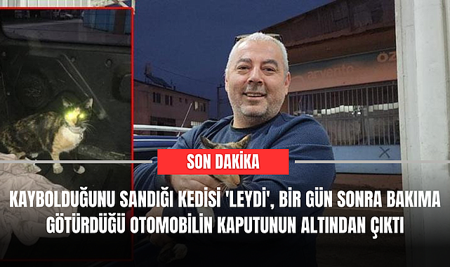 Düzce'de Recep Çakır'ın evden kaçan kedisi 'Leydi', bir gün sonra yağ bakımı için sanayiye götürdüğü otomobilinin kaputunun altından çıktı. Çakır, mutluluğunu ifade ederek, "Allah'tan kedimize bir şey olmamış. Çok sevindik" dedi.