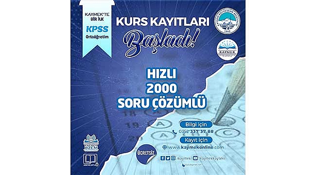 Kayseri Büyükşehir Belediyesi bünyesinde faaliyet gösteren Kayseri Mesleki Eğitim ve Kültür A.Ş. (KAYMEK), Uzaktan Eğitim Merkezi (UZEM) birimi ile ücretsiz olarak ortaöğretim KPSS kursu açtı. Kayıtların başladığı duyuruldu.