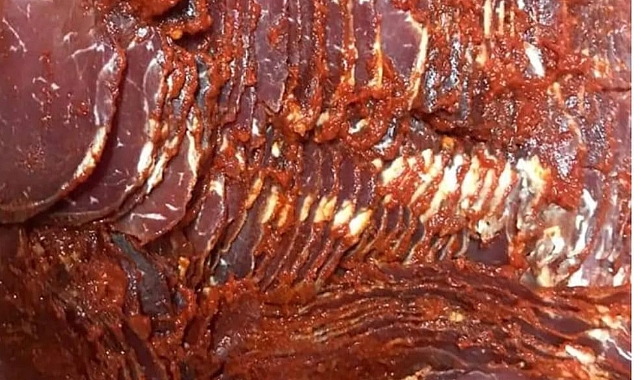 Tamamen doğal unsurlarla hiçbir katkı maddesi kullanılmadan iki aylık bir süre içerisinde ve “Pastırma Yazı” olarak bilinen Ekim ayında yapılan pastırma çeşidi lokum kıvamında ikram ediliyor.