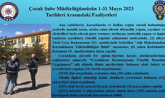 Çocuk Şube Müdürlüğümüzün 1-31 Mayıs 2023 Tarihleri Arasındaki Faaliyetleri