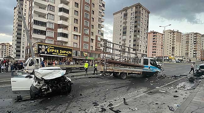Kayseri'nin merkez Melikgazi ilçesinde 3 aracın karıştığı trafik kazasında biri ağır 3 kişi yaralandı.Ş.K. yönetimindeki 38 ABP 077 plakalı otomobil ve Y.Y. idaresindeki 38 ABR 067 plakalı kamyonet ile sürücüsü öğrenilemeyen 01 YL 708 plakalı otomobil, Bahçelievler Mahallesi Kocasinan Caddesi'nde çarpıştı.İhbar üzerine olay yerine polis, sağlık ve itfaiye ekipleri sevk edildi.Kazada sürücüler Ş.K. ve Y.Y. ile kamyonette bulunan D.B. yaralandı.112 Acil Servis ekiplerince kentte bulunan çeşitli hastanelere kaldırılan yaralılardan Ş.K'nin durumunun ağır olduğu öğrenildi.Kazada, refüjde bulunan aydınlatma direği de hasar gördü.