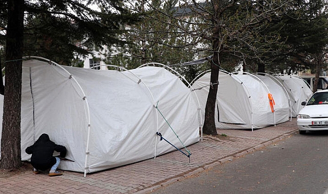 Kayseri'de 4.8'lik deprem sonrası boş alanlar naylon çadırlarla doldu
