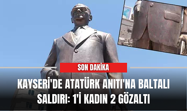 Kayseri'de Atatürk Anıtı'na baltalı saldırı: 1'i kadın 2 gözaltı