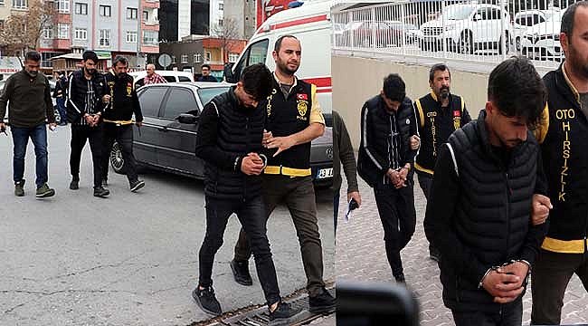 Kayseri'nin Kocasinan ilçesinde çaldıkları otomobili, halatla başka bir araca bağlayarak götüren 2 kişi, yakalanıp tutuklandı. Hırsızlık anları güvenlik kameralarına yansıdı.