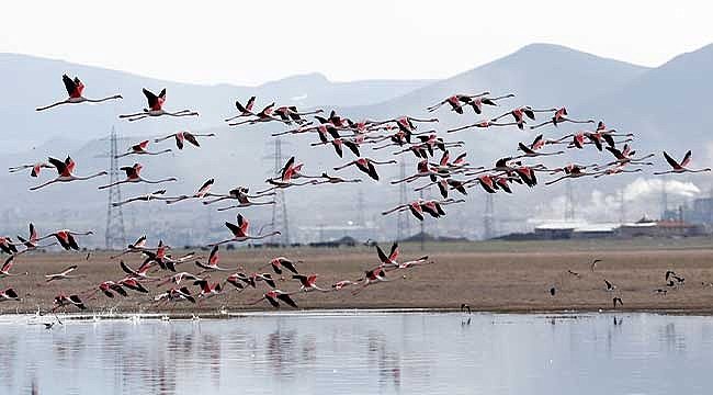 Kayseri'de flamingolar, eşsiz güzel görüntüler oluşturdu