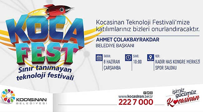 Kocasinan Belediyesi, Kocasinan İlçe Milli Eğitim Müdürlüğü işbirliğiyle gençlere yönelik düzenleyeceği Kocasinan Teknoloji Festivali (KOCAFEST) 8 Haziran Çarşamba günü Kadir Has Kongre Merkezi Spor Salon’unda başlıyor. Ortaokul ve liseli öğrencilerden oluşan toplam 101 takımın, 11 farklı kategoride yarışacağı KOCAFEST için son çalışmaları kontrol eden Kocasinan Belediye Başkanı Ahmet Çolakbayrakdar, KOCAFEST ’ten TEKNOFEST’ e uzanan festival ile geleceğin Türkiye’sini şekillendirilmesine katkı sağlayacaklarını belirterek, tüm Kayserilileri programa davet etti.