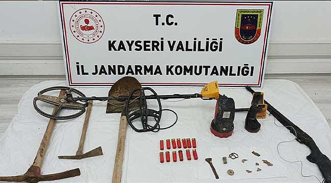 Pınarbaşı ilçesinde izinsiz kazı yapan şüpheli, jandarma tarafından gözaltına alındı.Alınan bilgiye göre, Eskiyassıpınar Mahallesinde devriye gezen jandarma, park halindeki bir araçtan şüphelenerek bölgede yaptığı kontrolde, O.Ö'nün kaçak kazı yaptığını tespit etti.Olay yerinde yapılan aramada, dedektör, dedektör başlığı, kazma, kürek, el feneri ve çapa ile av tüfeği ele geçirildi.Jandarma tarafından gözaltına alınan zanlının işlemleri devam ediyor.