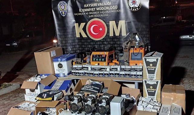 Edinilen bilgiye göre, Kayseri KOM Şube Müdürlüğü, Kaçakçılık Suçları Büro Amirliği ekipleri, son beş günde kaçakçılık suçlaması ile aranması bulunan 6 şahıs kıskıvrak yakaladı. Ekipler, bir şüpheli şahsın kiralamış olduğu bağ evinde makinalar ile sigara dolumu yaparak piyasaya sürdüğü bilgisi alması üzerine belirlenen adrese operasyon düzenledi. Operasyon yapılan adreste yapılan aramada; 2 (İki) adet elektrikli sigara doldurma makinası, 1 (Bir) adet havalı kompresör, 89.280 (Seksen Dokuz Bin İki Yüz Seksen) dal doldurulmuş makaron, 51.000 (Elli Bir Bin) dal boş makaron, 47 (Kırk Yedi) kg tütü, 1.050 (Bin Elli) adet sökülmüş TAPDK bandrolü suç unsurları ele geçirildi. Gözaltına alınan şüphelilerin emniyetteki sorgusu devam ediyor.