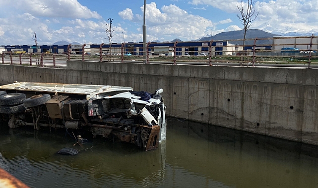 Kayseri’de sürücünün direksiyon hakimiyetini kaybettiği kamyon kanala uçtu.