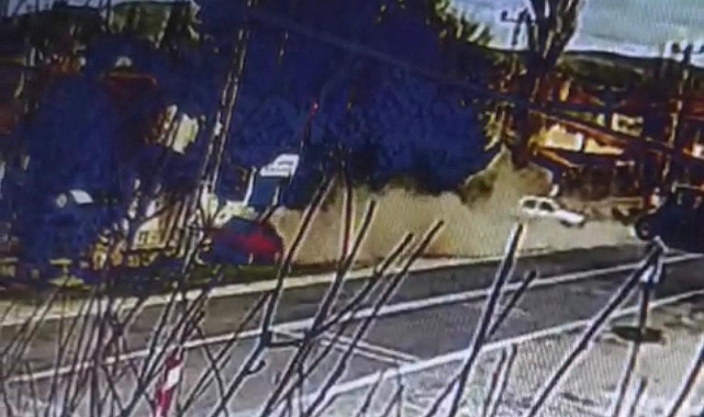 Diğer yandan kaza anı güvenlik kamerasına yansıdı.