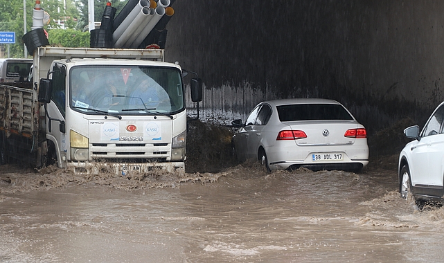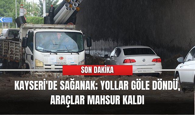 Kayseri'de sağanak; yollar göle döndü, araçlar mahsur kaldı