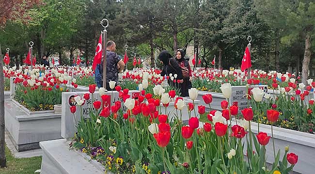 KAYSERİ (MHA) - Kayseri'de şehit aileleri ve vatandaşlar Ramazan Bayramı arifesinde şehitliği ziyaret ederek dua etti. Kayseri'de şehit aileleri ve vatandaşlar, arife günü nedeniyle sabah saatlerinden itibaren Kartal Şehitliği'ne geldi. Şehit aileleri, burada Kuran-ı Kerim okuyarak dua etti. Şehitlerin mezarlarını temizleyerek su döken yakınları, zaman zaman hüzünlü anlar yaşadı.