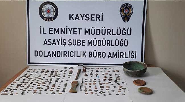 Kayseri’de Dolandırıcılık Amirliğine bağlı Güven Timlerinin yaptığı operasyonda 1’i yabancı uyruklu 3 kişi tarihi eser kaçakçılığı suçundan yakalandı.