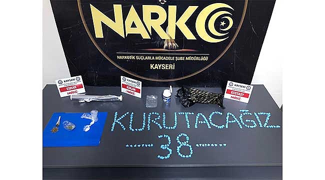 Kayseri İl Emniyet Müdürlüğü, Narkotik Suçlarla Mücadele Şube Müdürlüğü ekiplerince, uyuşturucu madde ticareti yapan, torbacı olarak tabir edilen şahısların yakalanmasına yönelik başlatılan operasyonda 33 zehir taciri gözaltına alındı. Gözaltına alınan şahısların ev, işyeri ve araçlarında yapılan aramalarda; 150 Gram Metamfetamin maddesi, 293 Adet Ecxtasy hap, 11,5 Gram Sentetik Kannabinoid maddesi (bonzai), 5 Gram Afyon Sakızı, 1,20 Gram Kokain , 2 Adet Hassas terazi, 2 Adet Ruhsatsız Tüfek , 3 Adet Şarjör, 10 Adet Tabanca Fişeği, 4 Adet Tüfek Kartuşu ele geçirildi. Şahısların emniyetteki işlemleri sürüyor.