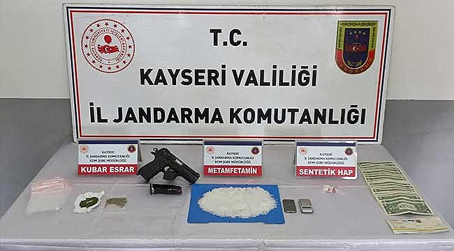 Kayseri İl Jandarma Komutanlığı ekipleri kentte çeşitli çalışmalar yürütüyor. Bu kapsamda Melikgazi ilçesinde bulunan bir adreste M.B. isimli şahsın, uyuşturucu madde bulundurduğu ve ticaretini yapma arayışında olduğu bilgisine ulaşıldı. Adrese yapılan operasyonda ekipler tarafından yapılan aramada; 450 gram metamfetamin, 20 gram kubar esrar maddesi, hassas terazi, 2 adet uyuşturucu hap ve ruhsatsız tabanca ele geçirildi.