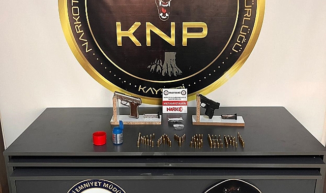 KAYSERİ'de polis ekipleri tarafından gerçekleştirilen uyuşturucu operasyonunda 3 kişi gözaltına alındı. İl Emniyet Müdürlüğü Narkotik Suçlarla Mücadele ve İstihbarat Şube Müdürlüğü ekipleri, uyuşturucu ticareti yapan kişilerin yakalanmasına yönelik çalışma başlattı. Bu kapsamda belirlenen adreslere düzenlenen operasyonda Ş.E.A. (31), O.K. (22) ve R.H.K. (34) yakalandı. Şüphelilerin üzerlerinde, adreslerinde ve araçlarında yapılan aramalarda 7,73 gram narkotik madde, 2 adet ruhsatsız tabanca ve 85 adet fişek ele geçirildi. Gözaltına alınan 3 şüpheli, polis merkezine götürüldü.