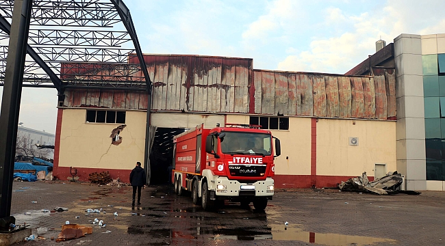 Yangının büyük çaplı zarara yol açtığı fabrikada, soğutma çalışmaları sürüyor.