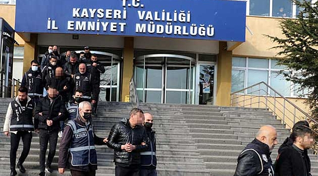 İl Emniyet Müdürlüğü Kaçakçılık ve Organize Suçlarla Mücadele Şube Müdürlüğü (KOM) ile İstihbarat Şube Müdürlüğü ekipleri, 20 mağdurun şikayeti üzerine 'yağma', 'uyuşturucu madde bulundurma', 'silahla tehdit', 'gasp', 'adam öldürmeye teşebbüs', 'suç işlemek amacıyla örgüt kurma', 'uyuşturucu ticareti' ve 'zorla çek-senet tahsilatı' suçlarını işleyen kişilere yönelik çalışma başlattı. Bu kapsamda 3 gün önce Kayseri merkezli İstanbul, Van ve Yozgat'ta 220 polisin katılımıyla eş zamanlı şafak operasyonu düzenlendi. Özel harekat polislerinin de destek verdiği operasyonda ev, gazino, otel ve gece kulübünde bulunan 35 kişi gözaltına alındı. Emniyette sorgulanan 10 kişi serbest bırakıldı. Diğer 25 şüpheli ise emniyetteki işlemlerinin ardından adliyeye sevk edildi.
