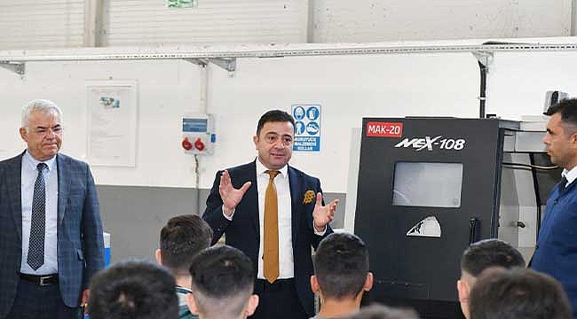 Öğretmenlerden bilgi alan ve öğrencilere yaptıkları çalışmalar hakkında sorular soran Başkan Yalçın, öğrencilerin uygulamalı eğitiminin büyük önem arz ettiğini ve fabrikalarda işbaşı eğitimlerinin ise titizlikle sürdürülmesi gerektiğini vurguladı.