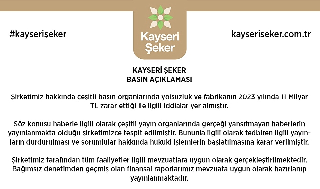 Kayseri Şeker'den Basın Açıklaması