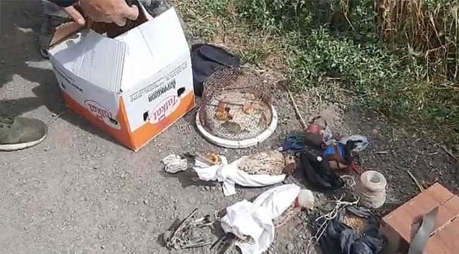 Kaçak avcıların av esnasında kullanmış oldukları 4 şahin başlığı, 15 örme tuzak, tel kafes; mühre olarak kullanılan 4 canlı güvercin, 1 tarla faresi, 2 kerkenez ve 2 ölü serçe kuşuna el konuldu. Ayrıca av esnasında kullanılan motosiklete de mülkiyeti kamuya geçirilmek üzere el konuldu.
