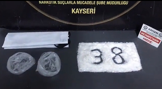 Kayseri İl Emniyet Müdürlüğü Asayiş Şube Müdürlüğü Narkotik Suçlarla Mücadele Şubesi ekipleri, uyuşturucu ticaretinin önlenmesine yönelik çalışmalarını sürdürüyor. Bu kapsam ekipler, bir şüphelinin kente uyuşturucu getireceği bilgisine ulaştı. Toplanan bilgiler ışığında harekete geçen polis, şüpheliyi yakaladı. Hassas burunlu narkotik köpeğinin de katıldığı aramada, şüphelinin üzerinde ve aracında bahse konu uyuşturucu metamfetamin maddesi ele geçirildi.