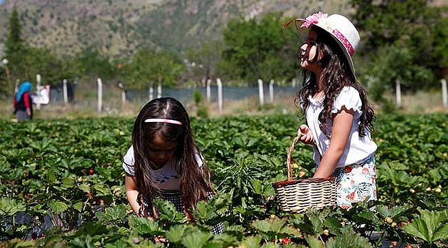 Kayseri'de eşiyle çilek üretimi yapan Tuğba Ayvaz'ın tarlasında düzenlediği çilek toplama günleri, vatandaşlara meyveyi dalından yeme imkanı sunuyor.