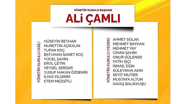 Kayserispor Başkan Ali Çamlı'nın yönetim kurulu asil listesinde, şu isimler yer alıyor: