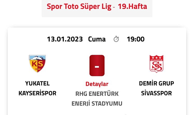 Kayserispor ligin 19’uncu haftasında Sivasspor ile karşılaşacak. Haftanın açılış maçı olan Anadolu derbisinin saati 17.00 olarak açıklanmıştı. Müsabakanın saati 19.00 olarak değiştirildi.