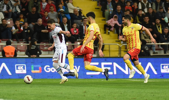 STAT: RHG Enertürk EnerjiHAKEMLER: Çağdaş Altay, Mustafa Sönmez, Ogün KamacıKAYSERİSPOR: Bilal Bayazit - Gökhan Sazdağı (Dk. 77 Carlos Mane), Kolovetsios (Dk. 62 Attamah), Arif Kocaman, Hasan Ali Kaldırım, Shukurov (Dk.46 Ramazan Civelek), Kartal Kayra Yılmaz, Bourabia, Boa Morte (Dk. 46 Nazon), Cardoso, Bahoken (Dk. 84 Talha Sarıarslan)TRABZONSPOR: Uğurcan Çakır - Meunier (Dk. 87 Fernandez), Mendy, Denswil, Eren Elmalı, Berat Özdemir, Bardhi, Visca, Pepe, Fountas (Dk. 69 Umut Güneş), Enis Destan (Dk. 74 Umut Bozok)GOLLER: Dk. 87 Bourabia (Kayserispor), Dk. 24 Enis Destan, Dk. 58 Pepe (Trabzonspor)SARI KARTLAR: Berat Özdemir, Eren Elmalı, Mendy (Trabzonspor)Süper Lig'in 33’üncü haftasında Kayserispor, sahasında Trabzonspor’a 2-1’lik skorla mağlup oldu.21’inci dakikada Bahoken ile verkaç yapan Shukurov’ın yerden sert vuruşunda kaleci Uğurcan meşin yuvarlağı iki hamlede kontrol etti.24’üncü dakikada Meunier’in sağ kanattan yaptığı ortaya yükselen Enis’in kafa vuruşunda meşin yuvarlak filelerle buluştu: 0-1.27’nci dakikada Trabzonspor ceza sahası içinde topla buluşan Bourabia’ya, bordo mavili oyuncu Meunier’in yaptığı müdahale sonrası maçın orta hakemi beyaz noktayı gösterdi. VAR incelemesi sonrası penaltı kararı iptal edildi.37’nci dakikada Kayserispor savunma arkasına atılan uzun topta Visca’nın sert şutunda kaleci Bilal, topun filelerle buluşmasına izin vermedi.Karşılaşmanın ilk yarısı bordo mavili ekibin 1-0’lık üstünlüğü ile sona erdi.50’nci dakikada Nazon’un yerden sert vuruşunda meşin yuvarlak kaleci Uğurcan’da kaldı.52’nci dakikada Pepe’nin pasında topla buluşan Bardhi’nin sağ çaprazdan sert vuruşunda meşin yuvarlak ikinci kez Kayserispor ağları ile buluştu. VAR incelemesi sonrası Visca’nın Cardoso’ya yaptığı müdahale faul olarak değerlendirildi ve gol kararı iptal edildi.58’inci dakikada Enis Destan’ın ara pasında topa hareketlenen Pepe’nin dokunuşunda meşin yuvarlak filelerle buluştu: 0-264’üncü dakikada Visca’nın sağ çaprazdan ceza sahası içine kestiği topa hareketlenen Fountas’ın şutunda meşin yuvarlak kale direğine çarparak, oyun alanına geri döndü.79’uncu dakikada Nazon’un ceza sahası içinden yaptığı sert vuruşta top kale direğinin hemen sağından oyun alanının dışına gitti.87’nci dakikada Uğurcan’ın çalım denemesinde topu kazanan Bourabia, topu boş kaleye gönderdi ve fark 1’e indi: 1-2Karşılaşma, bordo mavili ekibin 2-1’lik üstünlüğü ile sona erdi.