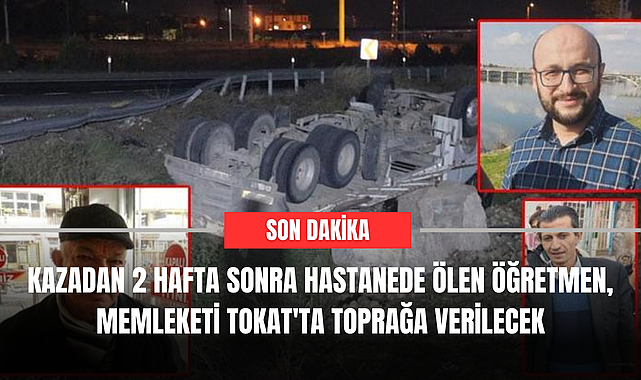 Kazadan 2 hafta sonra hastanede ölen öğretmen, memleketi Tokat'ta toprağa verilecek