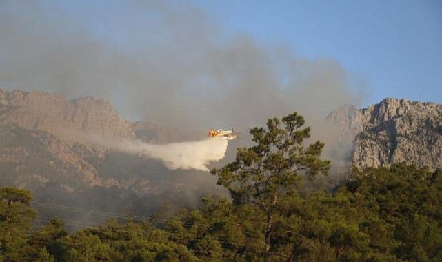 Antalya'nın Kemer ilçesindeki ormanlık alanda akşam saatlerinde başlayan ve gece boyunca devam eden yangına, sabahın ilk ışıklarıyla 10 uçak ve 22 helikopterin katılımıyla havadan müdahale başladı.