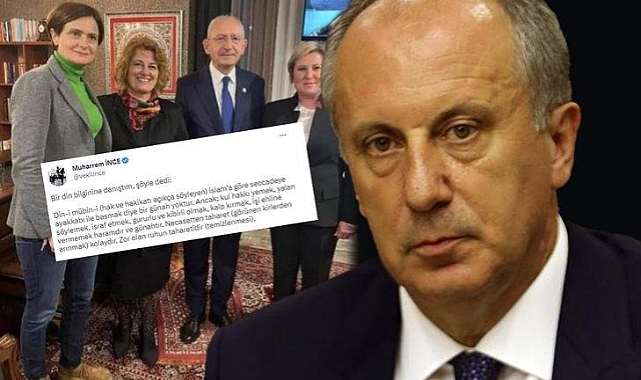 CHP Genel Başkanı Kemal Kılıçdaroğlu'nun sosyal medyadan paylaşılan ve bir seccade üzerinde durduğu fotoğrafıyla ilgili bir açıklama da Memleket Partisi Genel Başkanı Muharrem İnce'den geldi. İnce yaptığı paylaşımda "Bir din bilginine danıştım, şöyle dedi; İslam’a göre seccadeye ayakkabı ile basmak diye bir günah yoktur. Ancak; kul hakkı yemek, yalan söylemek, israf etmek, gururlu ve kibirli olmak, kalp kırmak, işi ehline vermemek haramdır ve günahtır" ifadelerini kullandı.