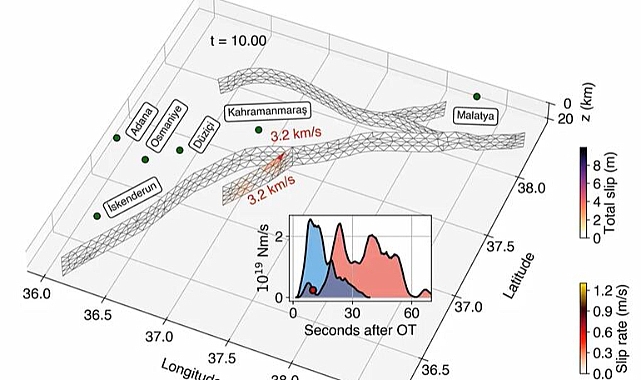 Kahramanmaraş merkezli depremlerin ardından İstanbul Teknik Üniversitesi’nden Prof. Dr. Tuncay Taymaz başkanlığında toplanan ve aralarında Kocaeli Üniversitesi’nden Doç. Dr. Serkan Irmak’ın da bulunduğu ekip, depremin karakteristik özellikleri hakkında incelemelerde bulundu.Fay düzlemi üzerindeki 3 boyutlu yırtılma modellemesini de çıkaran ekip, 6 Şubat günü saat 04.17’de meydana gelen Kahramanmaraş merkezli 7.7'lik depremin 3 fay segmenti üzerinde meydana geldiğini ve yıkıcı etkinin yaklaşık 50 saniye sonra İskenderun ve Hatay civarında büyük enerji boşalımlarına neden olduğunu belirledi.Depremin yıkıcı etkisinin, depremin başlangıç etkisinden kısa bir süre sonra kuzeydoğu ve güneybatı yönüne doğru ilerlediğini ifade eden Doç. Dr. Serkan Irmak, “Yapmış olduğumuz çalışmada depremin yırtılma mekanizmasıyla ilgili ilginç sonuçlara ulaştık. Birinci depremde 3 farklı segmentin kırıldığını görmekteyiz. Deprem başladıktan sonra Pazarcık- Nur Dağı adını verdiğimiz küçük bir segmentte kırıldıktan 9 saniye sonra yırtılma kuzeydoğuya doğru ilerliyor ve daha sonra güneybatıya doğru ilerlemese devam ediyor. Üç farklı segmentin bu depremde kırıldığını görmekteyiz. Üç segment boyunca farklı enerji boşalımlar var” ifadelerini kullandı.