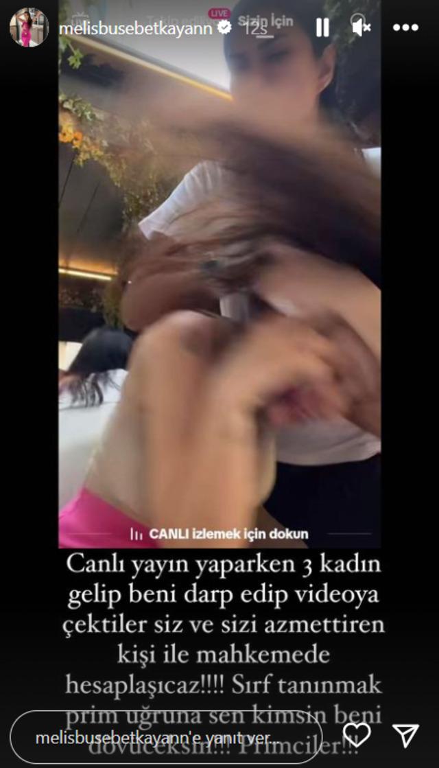 Bir dönemin efsane programı Kısmetse Olur'la tanıdığımız Melis Buse Betkayan, son zamanlarda evli ve üç çocuk babası Reşit Bozdağ ile inişli çıkışlı ilişkisiyle sık sık gündem oluyor. Son olarak Dilan Polat'ın eşi Engin Polat ile birliktelik yaşadığı iddia edilen Betkayan, TikTok canlı yayını sırasında saldırıya uğradı.Reşit Bozdağ bir yana, kısmetse olur Melis'in adı son günlerde Dilan Polat'ın eşi Engin Polat ile anıldı. Betkayan, Engin Polat'ın kendisine özel mesaj attığını öne sürdü.Polat ve Betkayan arasındaki iddiaların ardından Dilan Polat sosyal medyadan adeta ateş püskürdü ve açıklamasında; "Sizin bahsettiğiniz gibi aldatma iddiaları olsa onun ülkeyi, hatta dünyayı terk etmesi gerekir." ifadelerini kullandı.İddiaların ardından sosyal medya hesaplarını aktif kullanmaya devam eden Betkayan, TikTok hesabından canlı yayın yaparken bir anda saldırıya uğradı.Görüntülerde Betkayan'a "Sen bana mı dedin o lafları?" diyerek yaklaşan bir kadın saldırıda bulundu ve TikTok canlı yayını aniden kesildi. Yayının ardından Betkayan ınstagram sayfasından açıklama yapmayı ihmal etmedi.Kısmetse Olur Melis açıklamasında; 'Canlı yayın yaparken 3 kadın gelip beni darp edip videoya çektiler. Siz ve sizi azmettiren kişi ile mahkemede hesaplaşacağız! Sırf tanınmak, prim uğruna sen kimsin beni döveceksin? Primciler!' ifadelerini kullandı.