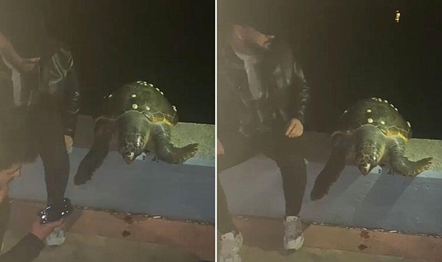 Kocaeli’nin Başiskele ilçesinde sahil şeridindeki vatandaşlar kıyıya vuran bir deniz kaplumbağası ile karşılaştı. Kaplumbağa ile fotoğraf çeken sahildekiler, sonra yeniden İzmit Körfezi’ne bıraktı.