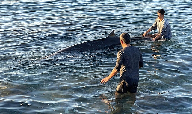 Kıyıya vuran yunus, depremzede aile sayesinde kurtarıldı